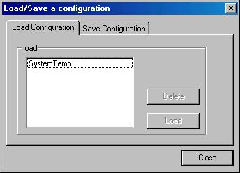 Hopefully the arrangement of the dialog will allow you to easily select the files you want to delete. Be sure not to reverse the search, i.e. if you want to delete all files with the .OBJ extension, you are selecting files by extension and you want to include .OBJ files - if you used exclude instead, you would exclude .OBJ files from the selection, i.e. you would find all files that don't have a .OBJ extension and then the files would be deleted. I.E. you select files, then apply the list/delete/move/backup operation to the selected files. Files can be selected by date only or extension only. The 2 parts of the search (date/extension) can also be OR'd or AND'ed togeather, e.g. you can select all files created after a given date AND that have the .OBJ extension, i.e. all .OBJ files created after a given date. Be carefull not to use OR when you mean AND - in the previous example if you used OR, i.e. selected all fiels created after a given date OR with the .OBJ extension, you would delete all .OBJ files on the system and all files with any extension that were created after the given date. Think twice before using OR! NOTE: If you are in doubt about the selection of files, you can run the selection with the list opeation only, and check the selected files in the log file before running with the delete operation. Repeating the same operation.Imagine that you are a C++ developer. The Visual C++ compiler produces quite a lot of large temporary files (particularly when in debug mode). You may want clean-up your development directories once a week, say. DiskClean allows you to save a particular configuration so that you can re-call it later and repeat the same clean-up. The Load/Save cfg button provides access to the following dialogs which manages saved configurations. By default, a configuration named System Temp is initially available. Once a configuration is saved, it can be recalled using the Load button or by passing the config-file name on the command line